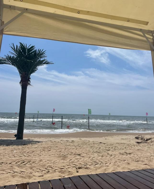 ①嗨皮水世界:这里的海水十分清澈,人流量相对较少,里面有秋千和独特的鲸鱼雕塑(唐山版),非常适合拍照留念。此外,场内允许免费搭建帐篷,我们还自带了沙滩椅,走到哪里都能随时休息,面对大海,静静思考,感觉非常不错。