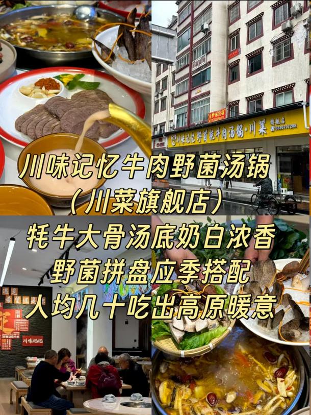 🥘川味记忆牛肉野菌汤锅(川菜旗舰店):适合家庭聚餐,店内环境干净大方,牦牛骨汤每日熬制,汤色奶白不油腻,野菌根据季节新鲜搭配,煮熟后味道鲜美!人均消费合理,享受美味!