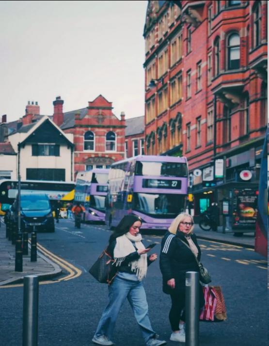 诺丁汉的市中心相对较小,以至于留学生们亲切地称之为“诺村”。这座城市的公共交通系统以公交车为主,车身涂装有粉色、蓝色和紫色,成为我见过的城市公交中最具色彩感和浪漫气息的。