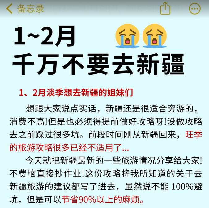 ✨如果你计划在1-2月期间前往新疆的姐妹👭,下面这份土著精心整理的攻略或许能帮到你,虽然不能保证100%避开雷区,但可以帮助你规避80%-90%的麻烦😆