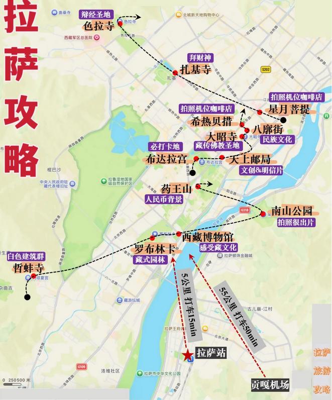 高铁🚄:抵达拉萨站后,打车约15分钟,距离市中心5公里