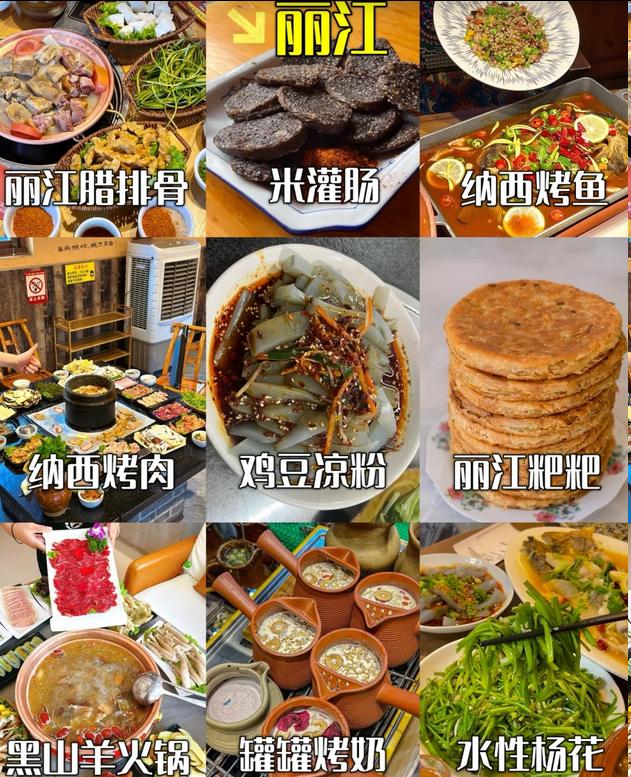 🥘丽江:腊排骨火锅、纳西烤鱼、鸡豆凉粉、过桥米线