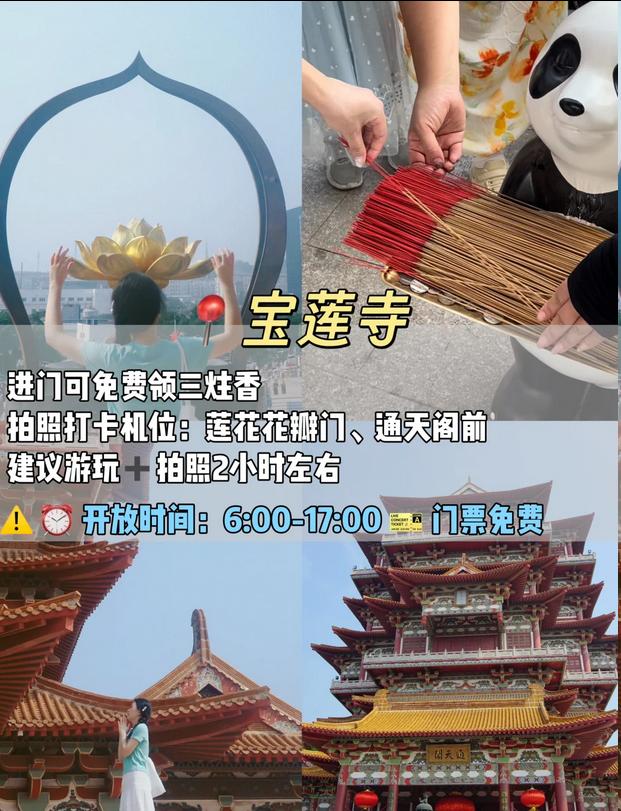 1⃣️宝莲寺:这里是拍照的绝佳地点!门票免费,开放时间为6:00-17:00,寺内有多处殿堂供人祈福,后方还有通天阁;想吃素面的话,建议早点去,因为需要排队!