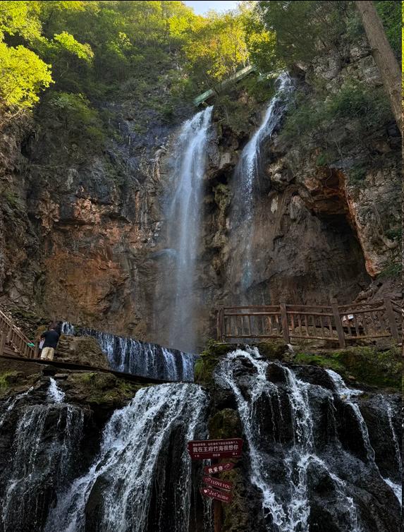 🍓🍓Day3:王府竹海·避世吸氧🌿 ✅人少景美!欣赏秋景+瀑布+爱心洞,9月正值河南的丰水期,瀑布在这一年中最为壮观。打开广角拍照,随便一张都是美丽的风景!! ✅建议游玩4-5小时,无论是徒步还是乘坐魔毯都很合适,带孩子和老人来玩特别好!! ✅距离市区大约1小时,建议自驾(提前规划好路线!)