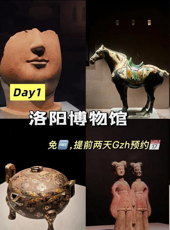 ✅ 早上:前往「洛阳博物馆」(免费入场,但需提前2天预约⚠️),欣赏青铜器和唐三彩,震撼人心,建议游玩2小时,提升文化素养!
