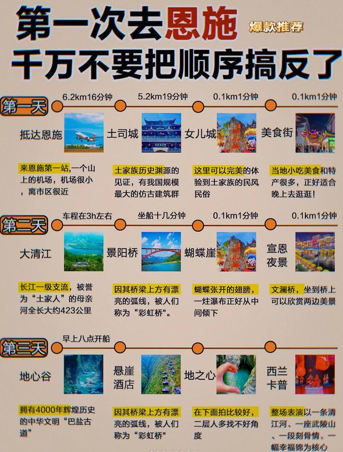 🎈恩施的景点较为分散,通常距离市区需要一到两个小时的车程。可以选择在市区住宿,通过大巴或拼车前往景区,或者参加当地的一日游团,方便当天往返。