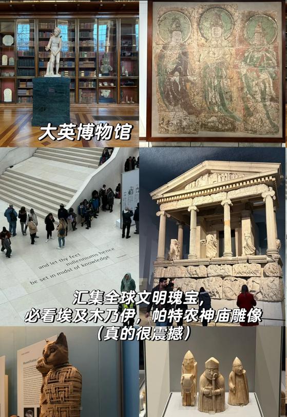 • 大英博物馆:入场无需门票,但需提前在官网预约 / 开放时间:每日10:00–17:00,周五延长至20:30