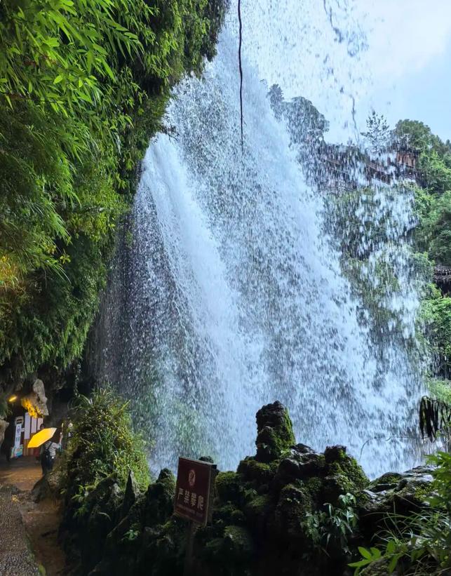 古镇内的青石板路较多,狭窄的上坡下阶梯的小道适合漫步。除了品尝地方特色美食,游客还可以欣赏到瀑布,拍摄出色的照片。我们甚至尝试从瀑布下穿过,虽然我们打着伞,但我觉得这非常有趣。待到夜幕降临,整个古镇的灯光亮起,焕发出另一种迷人的风貌。