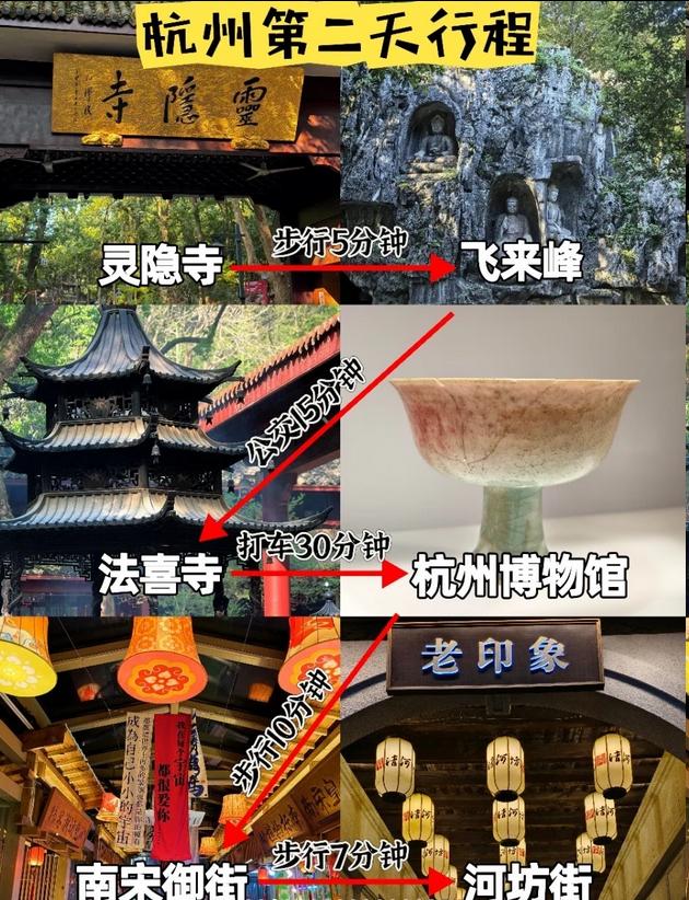 ✅第二天:参观灵隐寺→飞来峰→法喜寺→杭州博物馆→南宋御街→河坊街