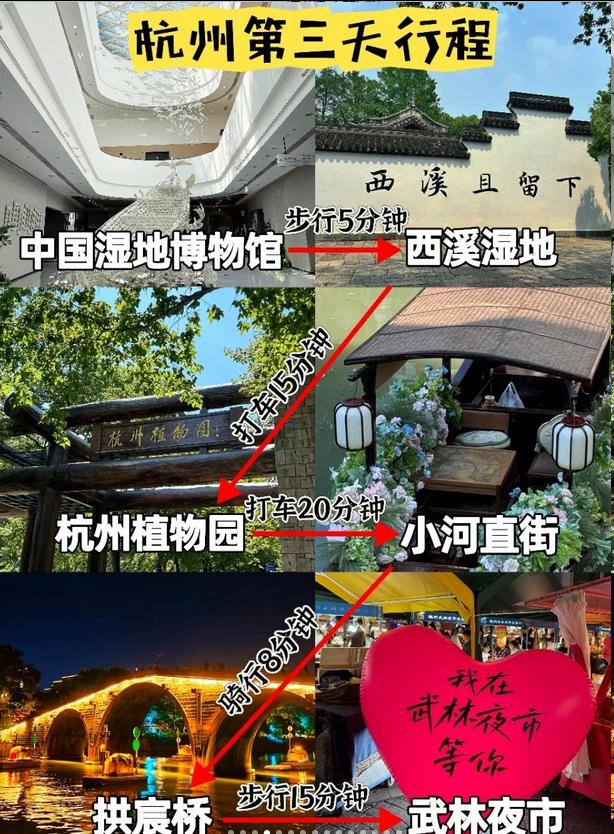 ✅第三天:中国湿地博物馆→西溪湿地→杭州植物园→小河直街→拱宸桥→武林夜市
