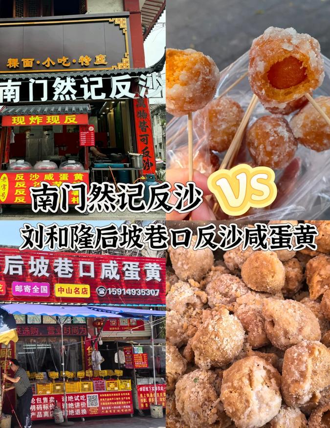 🙆♀️ 后坡巷口的这家店人气很高!但其产品更像是针对游客的,提供线上购买服务,保质期也较长,还有许多其他口味的反沙类产品。然而,真的是踩雷!反沙咸蛋黄的外壳又硬又厚,蛋黄也很小。南门然记的反沙咸蛋黄,外壳软硬适中,蛋黄非常大!主打现做现吃,味道极佳!