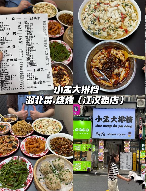 ✅小孟大排档:湖北地方美食与烧烤的结合。位于江汉路,人均消费不高,物超所值。