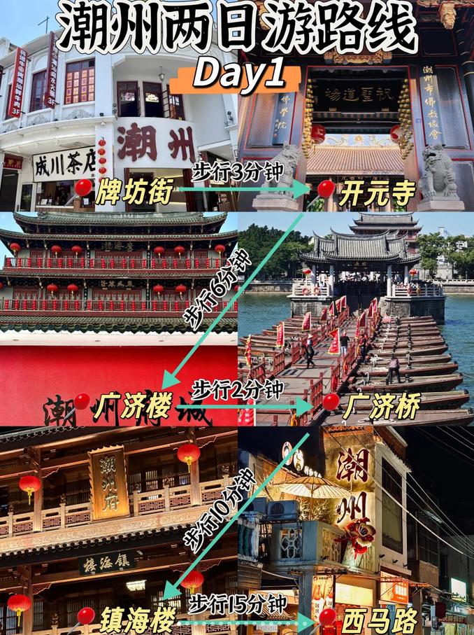 第一天:牌坊街➡️开元寺➡️广济楼➡️广济桥➡️镇海楼➡️西马路