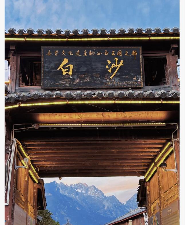 3️⃣第三天:从大理出发前往丽江,我们上午出发,中午抵达丽江,直接入住白沙古镇。下午和晚上游览白沙古镇,这里是我们这几天中最具特色的古镇,可以深入体验当地纳西族的文化,非常推荐!