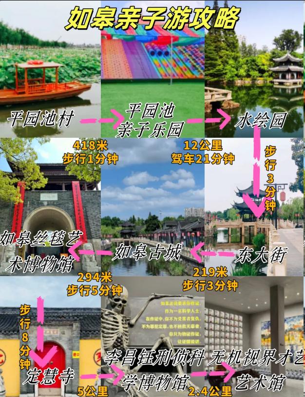 平园池村→平园池亲子乐园→水绘园→东大街→如皋古城→如皋丝毯艺术博物馆→定慧寺→李昌钰刑侦科学博物馆→无机视界才艺艺术馆