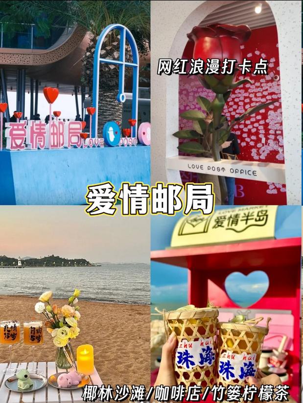 ✨亮点:蓝白色调的 INS 风建筑,二楼的咖啡馆提供珠海限定的奶茶(甘杯双 Q 口感很棒👍),与灯塔和爱情锁墙合影非常浪漫。