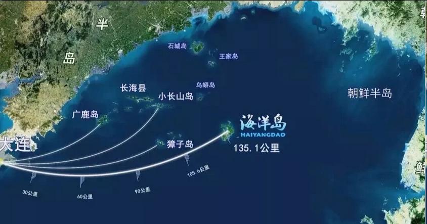 海洋岛是长海县距离大陆最远的岛屿,距庄河约60公里,距离金州杏树港85公里,大连市区则远达125公里,至朝鲜大陆则有175公里。