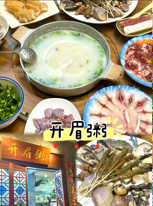每桌都有一大锅,粥底鲜美浓稠,食材也非常新鲜