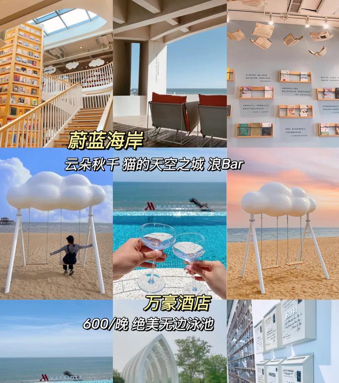 🏫住宿:万豪酒店(600元以上/晚)无边泳池 景点有【猫的天空之城】【海边云朵秋千】【浪Bar】 万豪酒店位于蔚蓝海岸,这里半天的游玩时间足够,下午就可以前往北戴河。