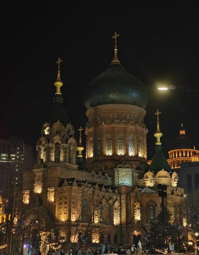 📍用餐后可以散步前往圣索菲亚教堂欣赏夜景(19:30时亮灯💡),打卡完教堂后可在中央大街逛逛,尽情享受小吃