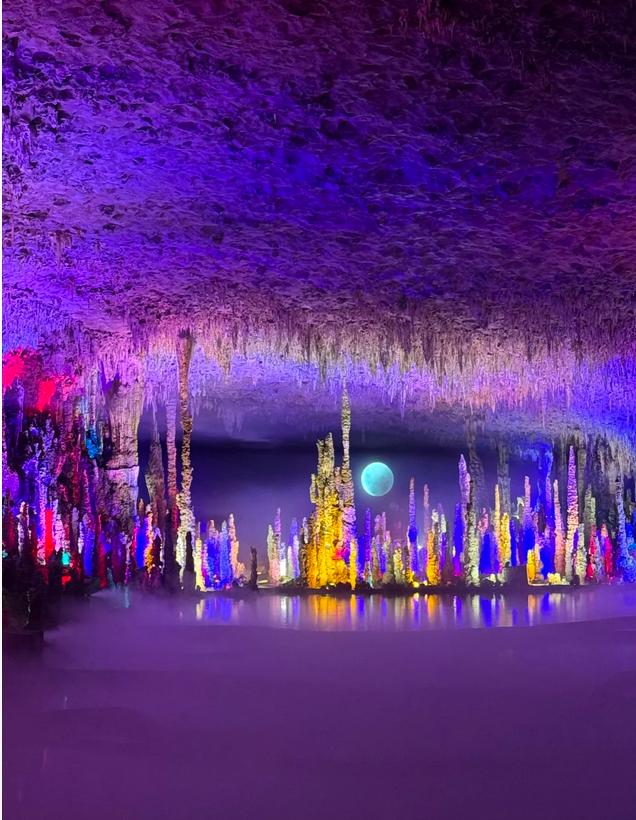 ✅天泉洞是一个宏伟的地下溶洞,灯光下的钟乳石形态各异,宛如梦境般迷人!
