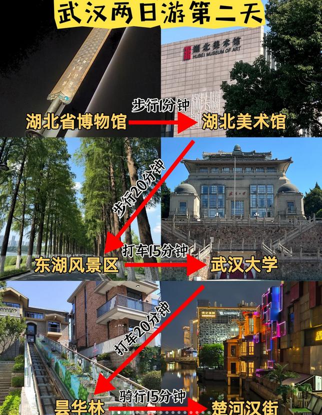 2️⃣武汉的地铁出行非常方便,建议结合打车与地铁出行,也可以选择骑行享受美丽的风景。