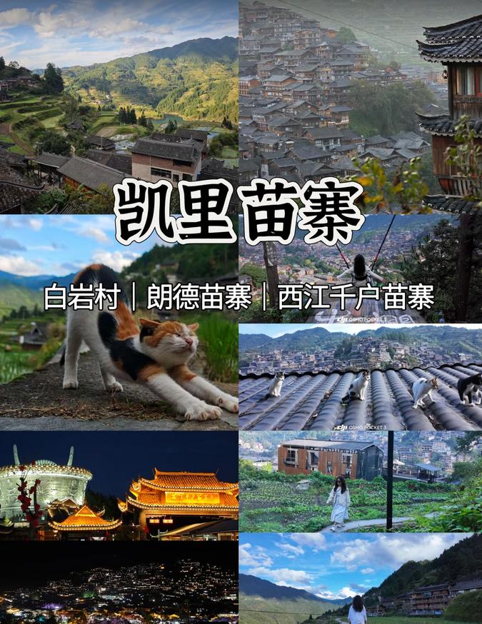 📍推荐的一日行程:从凯里市区出发→上午游览朗德→下午前往白岩→晚上游览千户苗寨(第二天早上可以拍摄白天的景色)。要注意防晒和防止虫咬(特别是蠓虫),穿裙子和短裤时要小心,很容易被叮咬。