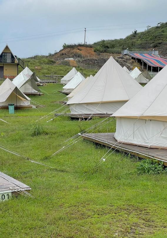 沿着茶园向上行进,不久便能看到一片广阔的草地,这里就是粤东知名的露营场所——大洋国际露营基地。周围还有彩虹滑道、高山湖泊等景点和活动,非常适合周末与家人一同前来游玩。这里的精彩活动包括: