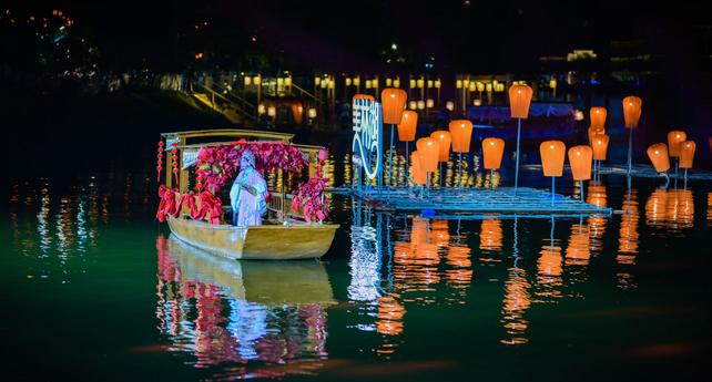 10月2日,湖岸公园还将举行夜间的花船巡游、水上火壶展示和打铁花表演,铁花映照夜空,美丽又充满温情~傩舞和非遗国潮戏剧也可以在美林湖营销中心欣赏哦~😝