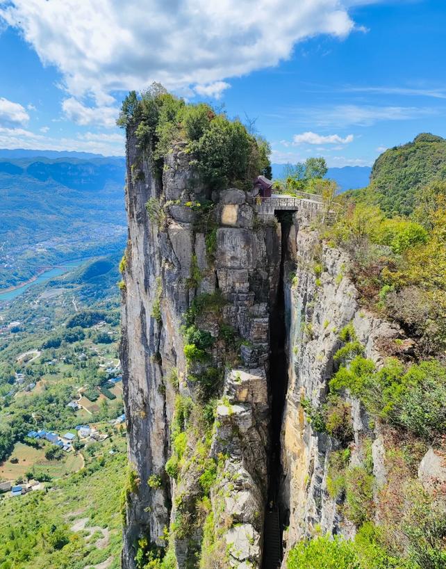 被誉为“小恩施大峡谷”,此地奇峰耸立,绝壁挺拔,山间有一条垂直的狭缝,传说是黄鹤飞升之地,后人为了连接“天”和“地”而修建了这座桥,因此得名“黄鹤桥”。从景区的入口处攀登至山顶,大约需要1.5小时!