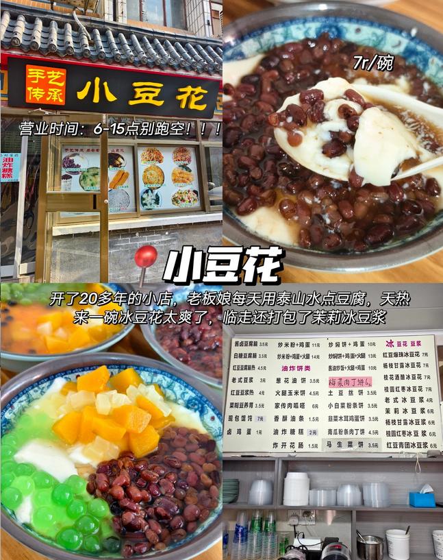 经营了20多年的小店,老板每天用泰山水制作豆腐,炎热的天气来一碗冰豆花简直太爽了!🈺营业时间为6:00-15:00