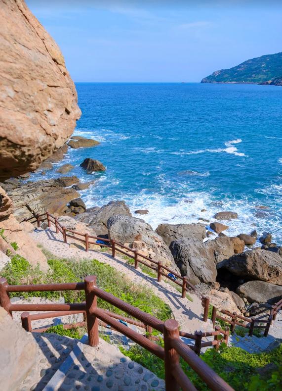 📍背来石:依山而建的步道直通大海,奇特的石头如同置身于地质公园
